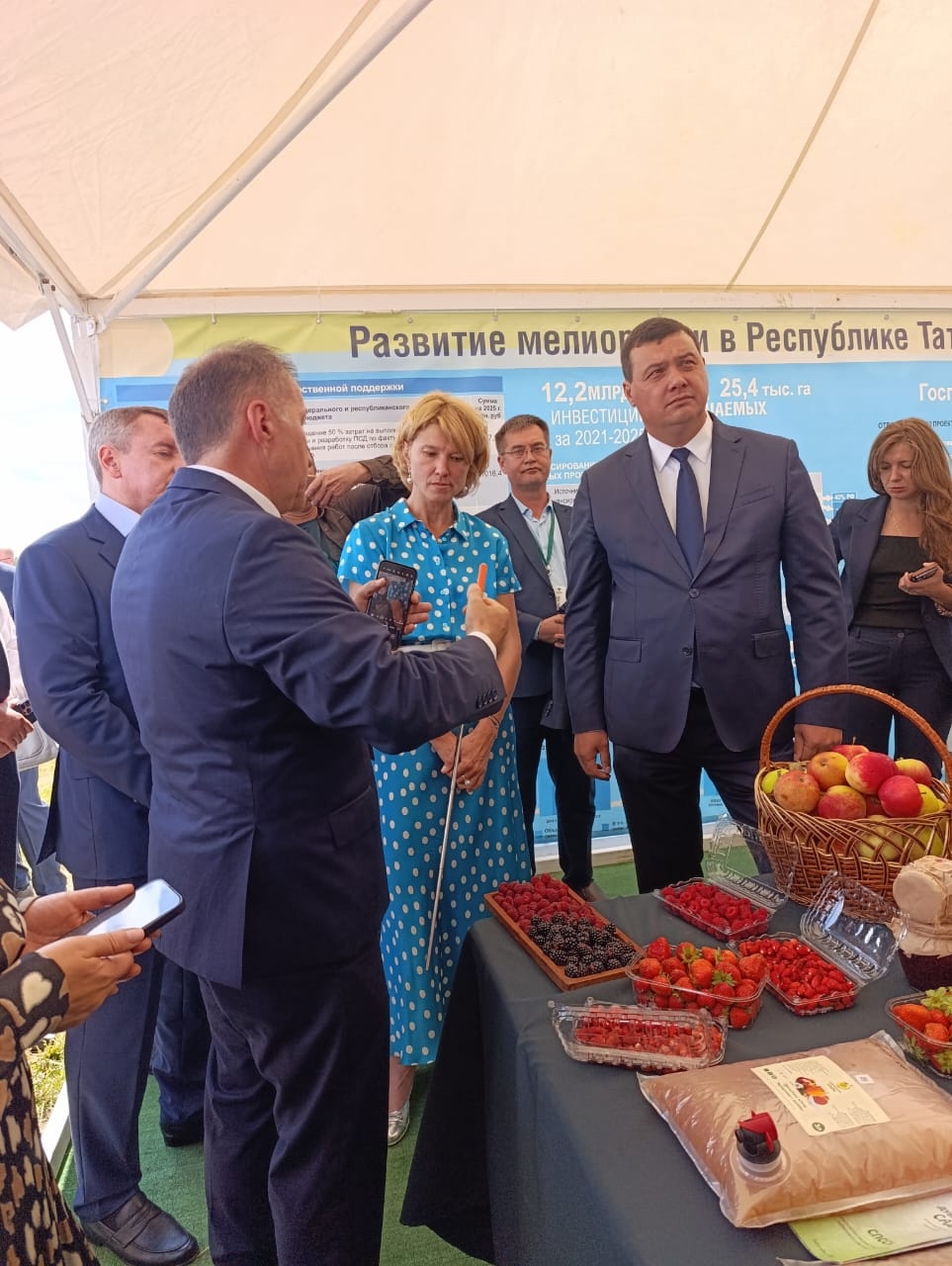 Высокие гости отведали плодово-ягодную продукцию, выращенную мелиораторами на поливе. Министр сельского хозяйства РФ Оксана Лут высоко оценила уникальную научно-мелиоративную площадку «Агробиотехнопарк», а так же научные и образовательные инициативы мелиораторов и ученых Казанского ГАУ.